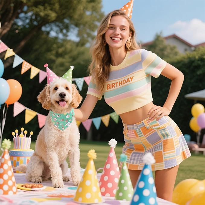 - Cute Pattern Design - Cute cake printed on a white green birthday bandana perfect for celebrating your beloved pets birthday.The dog cooling bandana for boys and girls are equally beloved by male and female canines alike! Regardless of your dog's temperament,lively or calm,these bandanas will suit them perfectly.