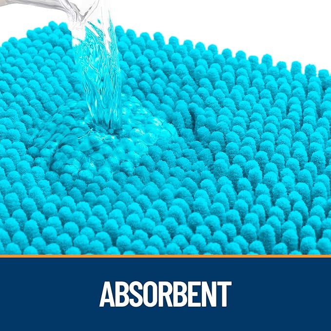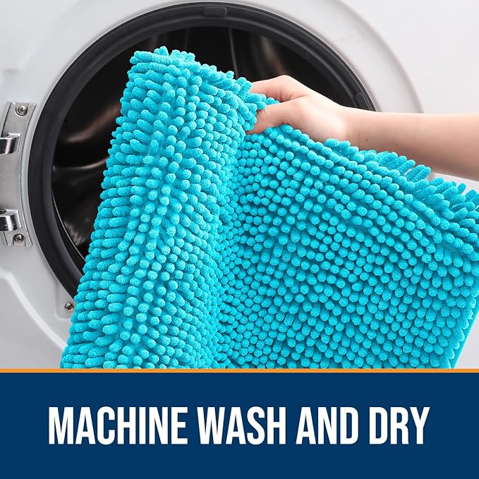 OLANLY Dog Door Mat for Muddy Paws 24x16, Absorbs Moisture and Dirt, Absorbent Non-Slip Washable Doormat, Quick Dry Chenille Mud Mat for Dogs, Entry Indoor Entryway Carpet for Inside Floor, Aqua Blue