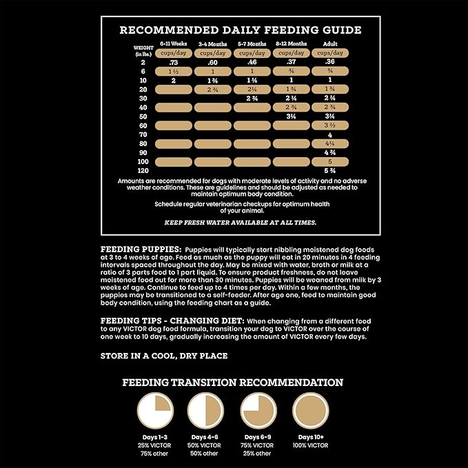 - VICTOR kibble is produced in our own Texas-based facility, with a majority of ingredients coming from ranches, farms and other trusted suppliers who are within a day’s drive of our plant. VICTOR is proud to support military Veterans and service dogs.