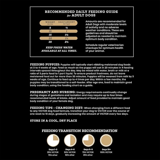 - VICTOR kibble is produced in our own Texas-based facility, with a majority of ingredients coming from ranches, farms and other trusted suppliers who are within a day’s drive of our plant. VICTOR is proud to support military Veterans and service dogs.