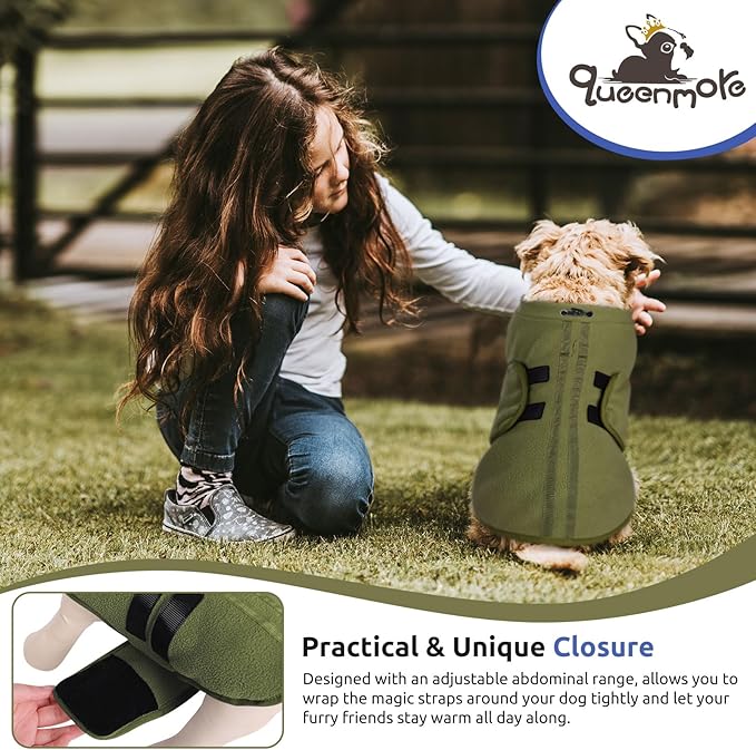 Queenmore Medium Dog Sweaters, Soft Fleece Vest Pullover Dog Jacket with Leash Hole, Warm Winter Dogs Clothes Cold Weather Doggy Dachshund Sweater for Medium Dogs Cats Boy or Girl (Army Green, M)