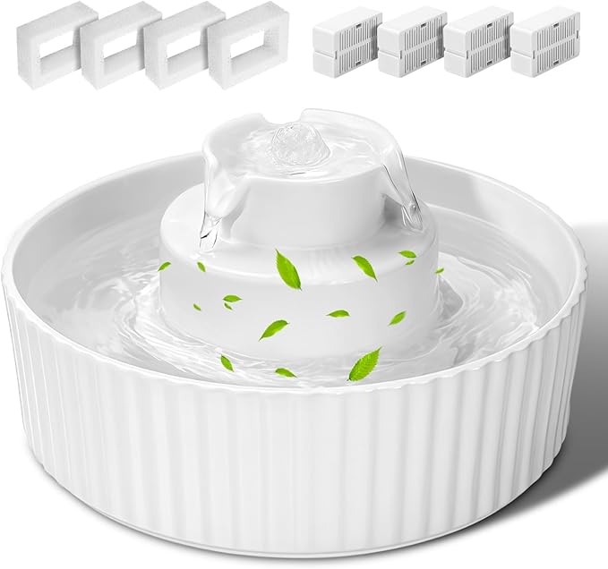 - 😽【Multi-Filtration, Water Purification】: Equipped with activated carbon filter and pre-sponge filter, which can remove sediment, debris and pet hair, this ceramic pet water dispenser can provide a constant supply of flowing purified water. Note: It is healthier to change the filter every 4 weeks!