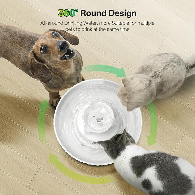 - 😽【360° All-Round Drinking Area】: Flowing ‘Live Water’ is the choice of pet’s nature, which better encourages pets to drink more water, Our pet water bowl ensures that each pet has easy access to fresh water from any angle.