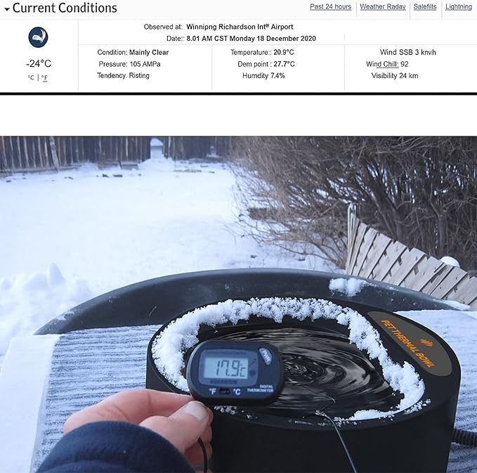 - 1.65 M (5.5 feet) steel wrapped power line. Waterproof red light indicator allows animals to quickly find water on winter nights. Foam pads on the bottom of dish to prevent slippage and stabilize on a flat surface.