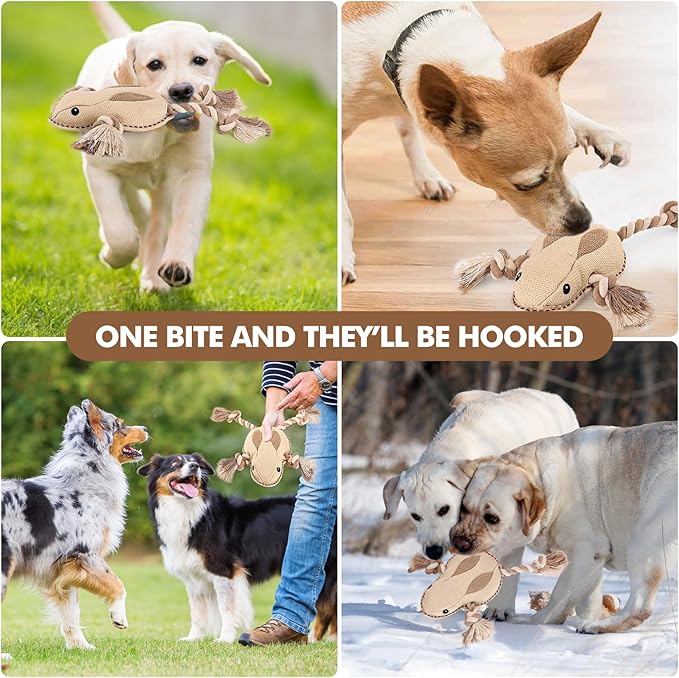 - Introducing our interactive and dog chew squeaky toys. Perfect for playing tug of war, walking, or simply keeping your furry friend entertained, these toys are designed to even chewers. The durable material ensures long-lasting fun while the squeaky feature adds an extra level of excitement. Use these toys for training, feeding, or simply to help alleviate boredom and keep your pup active and engaged. Your dog will love the fun and cute design of these toys, making them a must-have for any pup's toy collection