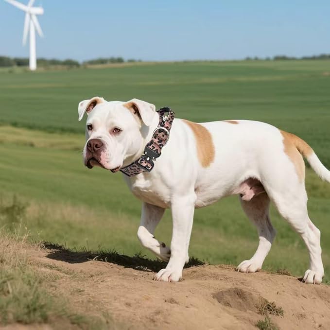 TSPRO Premium Dog Collars Tactical Dog Collar with Handle and Heavy Duty Quick-Release Metal Buckle Durable Thick and Adjustable for Medium to Large Dogs (Leopard Print L)
