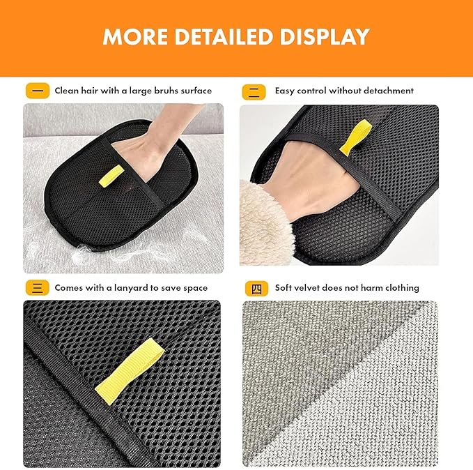 - Powerful Electrostatic Pet Hair Removal Gloves – Double-sided gloves for cats & dogs. Quickly remove stubborn pet hair from furniture, carpets, clothes & car interiors. Also works as a dog hair remover for couch and cat hair remover furniture.