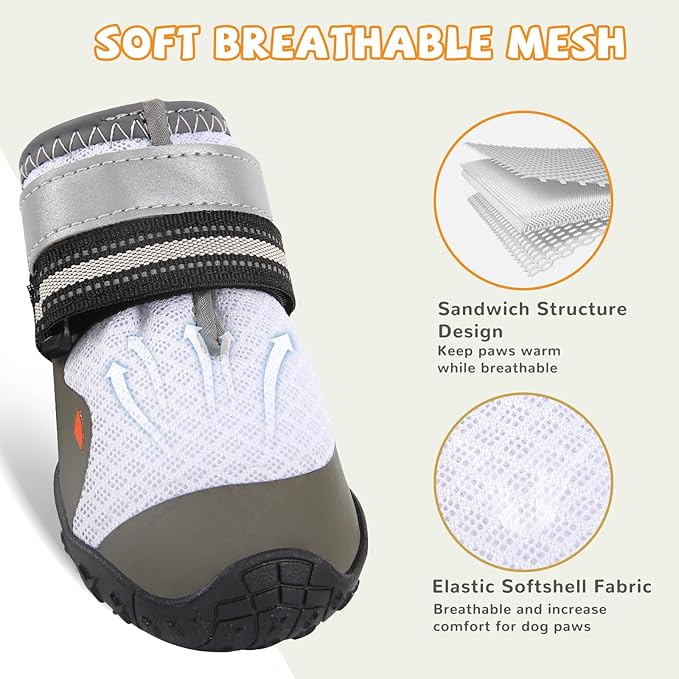 Dog Shoes for Medium Large Dogs, Dog Boots & Paw Protectors to Prevent Licking, Anti-Slip Dog Booties with Reflective for Summer Hot Pavement, Outdoor Hiking, Hardwood Floors (Size 7)