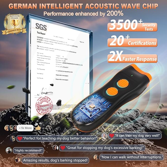 - 【German Chip - Smart Frequency Modulation & Ultrasound Technology】This anti barking device for dogs uses German-imported frequency modulation and ultrasonic technology, offering 200% performance boost. 1S quick response, using precise ultrasonic frequencies to correct bad behaviors effectively.