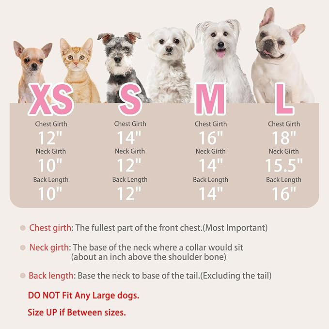 - 4 Available Sizes for choose: Size: XS(Chest girth: 12", neck girth: 10", body length: 10"), S(Chest girth: 14", neck girth: 12", body length: 12"), M(Chest girth: 16", neck girth: 14", body length: 14"), L(Chest girth: 18", neck girth: 15.5", body length: 16")