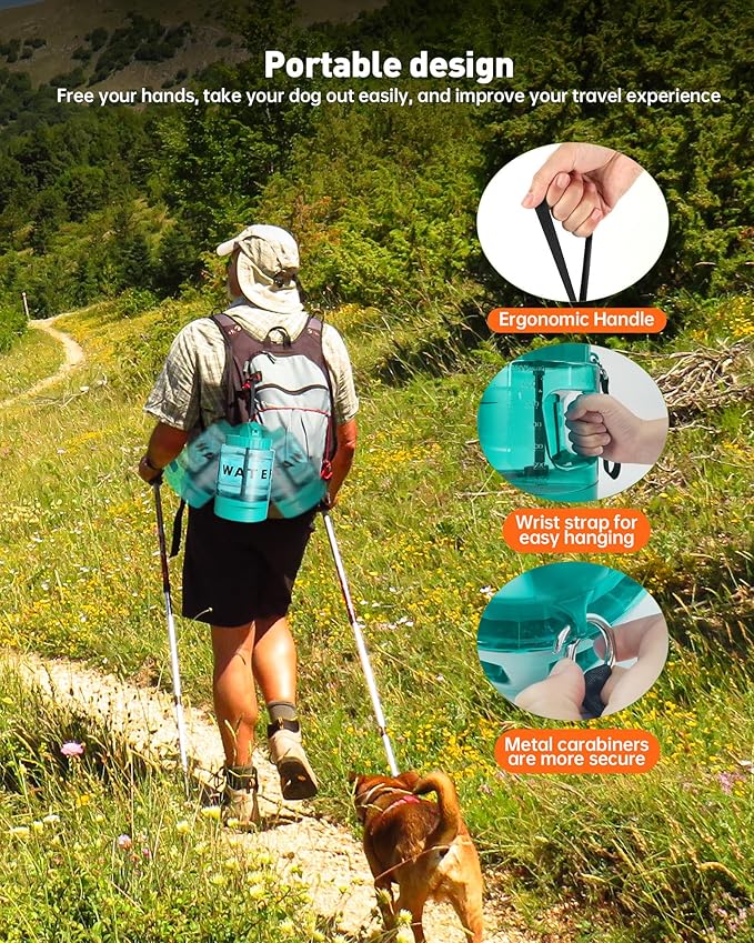 - 77 oz Large Capacity Design: This portable dog water bottle has a large water storage capacity of 77 oz, one-time hydration lasts longer. For medium to large dogs and families with multiple dogs, there is no need to add water frequently. There is no need to worry about the dog being thirsty or having no water during long outdoor activities, which increases the owner's sense of security when traveling