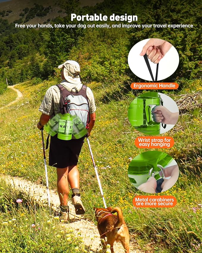 - 77 oz Large Capacity Design: This portable dog water bottle has a large water storage capacity of 77 oz, one-time hydration lasts longer. For medium to large dogs and families with multiple dogs, there is no need to add water frequently. There is no need to worry about the dog being thirsty or having no water during long outdoor activities, which increases the owner's sense of security when traveling