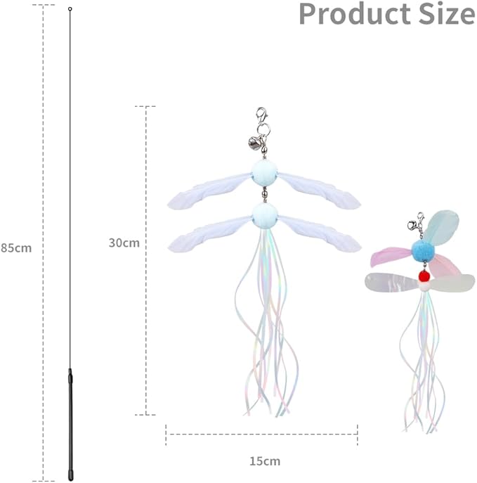 PAZ'S GIFT Cat Wand Toys, Interactive cat Feather Teaser Wand Toy with 2 Replacement Heads, Indoor cat Stick Toys