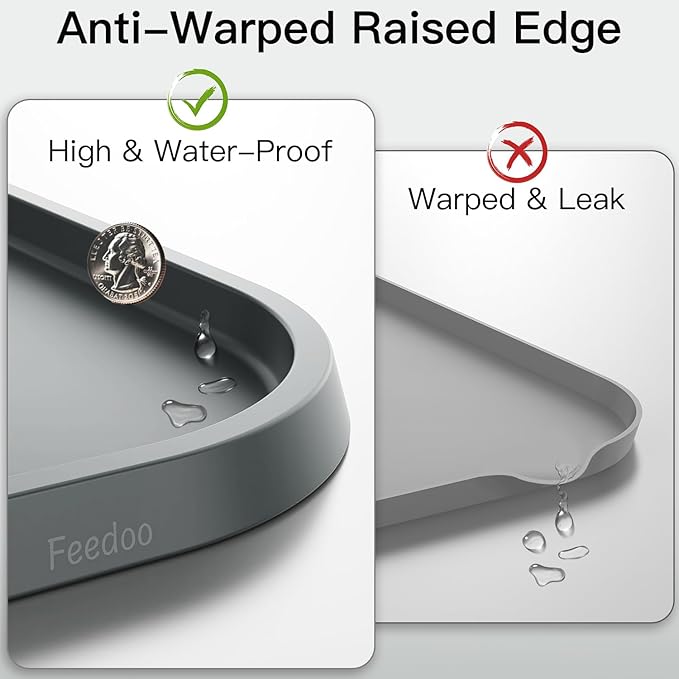 - WARPED RESISTANT RAISED EDGE: Features a 0.4inch(10mm) raised, trapezoid edge design that resists warping, ensuring 100% mess-free feeding. The only mat with deformation-resistant edges on the market.