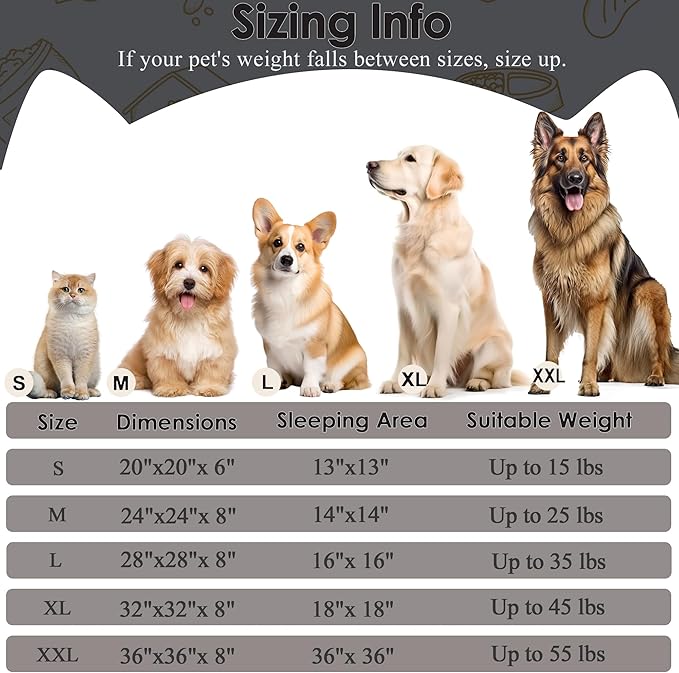 - SIZE: This extra large dog bed soothing bed measures approximately 36 x 36 x 8, making it perfect for a 55 pound snuggle puppy on a furry dog bed large