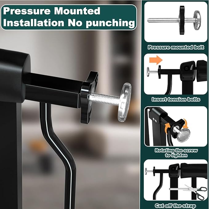 - 【EASY TO INSTALL & WALL FRIENDLY】 You can use Pressure mount installation,it's convenient and strong, and it can protect your wall .It's easy to remove,you can remove it anytime when it is not in use. Reuse is certainly possible when you move to a new place.Note:if you want to use it on the top of stairs,please use hardware mounted installation.