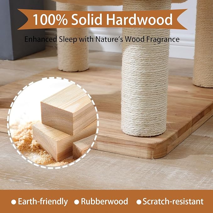 - 【Hassle-Free Support】24/7 expert assistance for all solid wood cat tree inquiries. Your satisfaction guaranteed - we're committed to resolving every cat owner's concerns with genuine care.