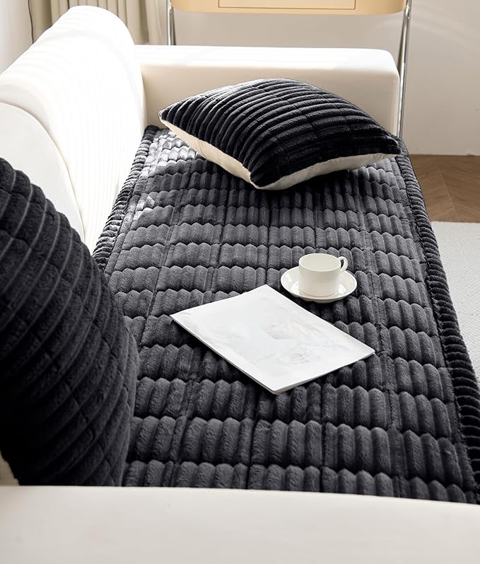 - Stays in Place: The soft faux fur Sofa Slipcover has an non-slip backing silicone rubber design; Stay in place firmly better than other normal ones which use straps. Please note, minor adjustments will be needed with rowdy dogs and kids.