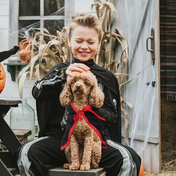 Threetols Pet Vampire Cloak Cape Costume Clothes, Adjustable Black Red Pets Devil Accessories Outfit Decor Cowl for Small Cats Dogs Animals Halloween Party Pets Cosplay