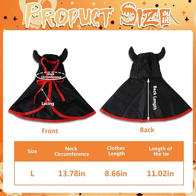 - Proper Length: With a clothes length of 8.66 inches for the L size, this cape provides enough coverage to look stylish on your pet while not impeding their movement.