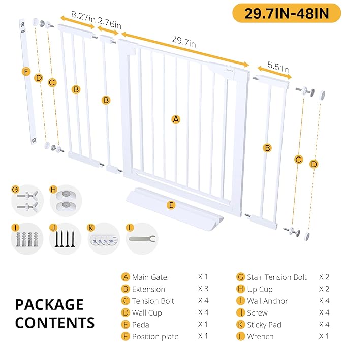 - Fits More Spaces, No Drilling Needed on Stairs: Adjustable to fit 29.7"–48" wide spaces. Comes with Y-shaped bolts, allowing secure installation on round stair railings—no drilling required. Great for stairs, kitchens, doorways, and more.
