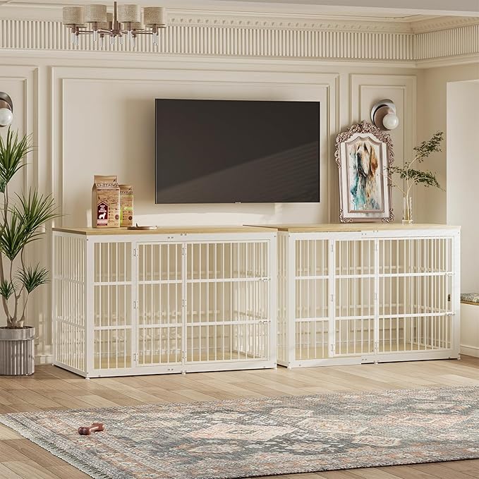 - 【Sturdy and Chew-Resistant】This tall dog crate furniture is made of premium particle board and iron pipe, which is stronger and more chewy; It will accompany your dog throughout the growing stages; It's an ideal gift for your dog