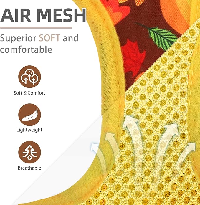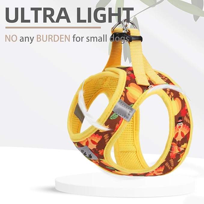 PUPTECK Adjustable Dog Harness Collar and Leash Set Step in No Pull Pet Harness for Small Medium Dogs Puppy and Cats Outdoor Walking Running, Soft Mesh Padded Reflective Vest Thanksgiving Harnesses