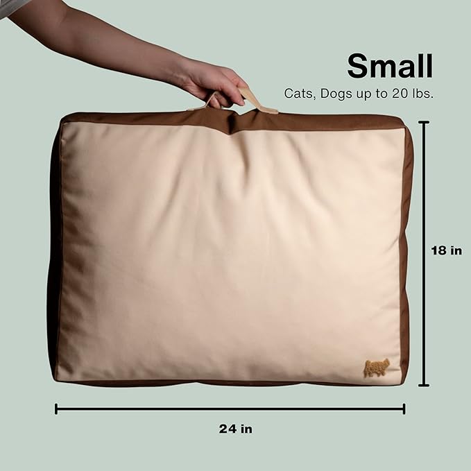 Rawry Orthopedic Dog Bed | Memory Foam Dog Bed with Handle | Water-Resistant, Machine Washable Cover | Floor Cushion for Cats, Dogs & People - Tan/Brown (Small - 24" x 18")