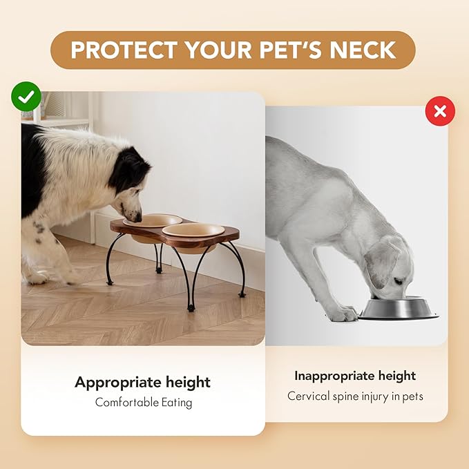 - Sturdy Enough Stand Frame:Raised dog bowl stand is made of high quality rustless metal material and acacia wood , much heavier, stronger and more durable than ABS plastic dog food bowl stand.