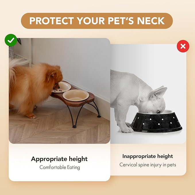 - Sturdy Enough Stand Frame:Raised dog bowl stand is made of high quality rustless metal material and acacia wood , much heavier, stronger and more durable than ABS plastic dog food bowl stand.