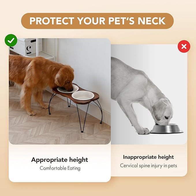 - Sturdy Enough Stand Frame:Raised dog bowl stand is made of high quality rustless metal material and acacia wood , much heavier, stronger and more durable than ABS plastic dog food bowl stand.