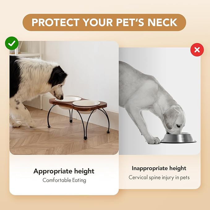 - Sturdy Enough Stand Frame:Raised dog bowl stand is made of high quality rustless metal material and acacia wood , much heavier, stronger and more durable than ABS plastic dog food bowl stand.