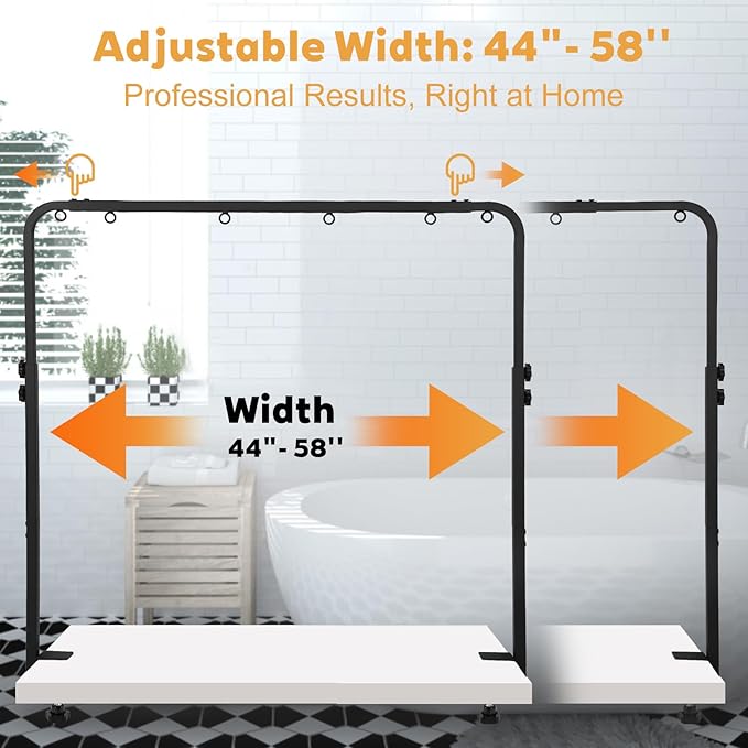 - 【Adjustable & Sturdy Grooming Arm】This dog grooming arm extends from 30" to 42" in height and 44" to 58" in width, offering flexibility for various table sizes. The heavy-duty clamp securely fits tables up to 2.6" thick, ensuring stability during grooming, nail trimming, or drying sessions.