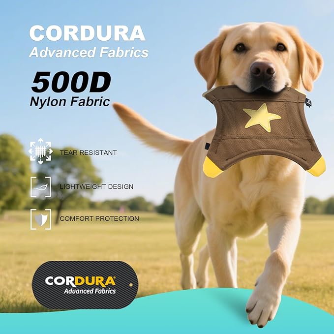 - CLASSIC COLORS + STAR PATTERNS. Versatile, dirt-resistant, & blends with nature. Bright five-pointed stars create a vivid look—helping dogs lock onto it fast, boosting chasing enthusiasm, & standing out from plain designs. Ideal for German Shepherds, Labs, Pit Bulls, Huskies, Rottweilers, & other medium large/aggressive breeds