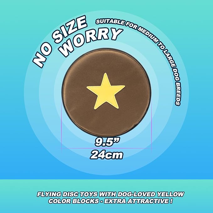 - CLASSIC COLORS + BRIGHT STAR PATTERNS. This disc is dirt-resistant, blends with natural environments, and its star design creates strong visual impact. It helps dogs lock onto targets fast, boosts their chasing enthusiasm, and avoids solid-color monotony