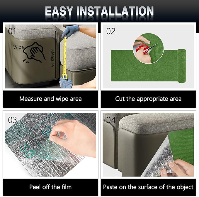 - [Strong Adhesive Support]: This cat carpet mat is designed with a self-adhesive backing that is held securely in place with an eco-friendly adhesive. Easy to install, simply peel off the backing and stick it to the desired surface to ensure a secure, hassle-free fit and maintain a firm grip. We have also prepared additional eco-friendly adhesive and screws for you to help you better choose the usage scenarios.