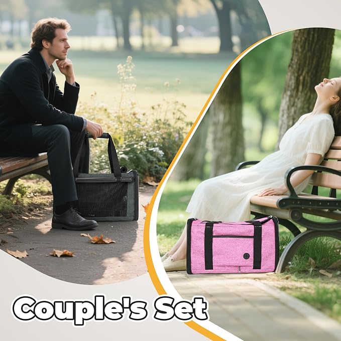 YUDODO 2 Packs 25 lbs Lightproof Soft Sided Cat Carrier for Large Cat & Small Dog Airline Approved Travel Puppy Carriers with Side Pockets & Reflective Mesh, Foldable Portable for Car Grey Green+Pink