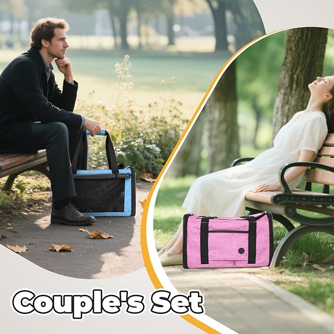 YUDODO 2 Packs 25 lbs Lightproof Soft Sided Pet Carrier for Large Cat & Small Dog Airline Approved Travel Bag Puppy Carriers with Side Pockets & Reflective Mesh, Foldable Portable Pink+Lake Blue