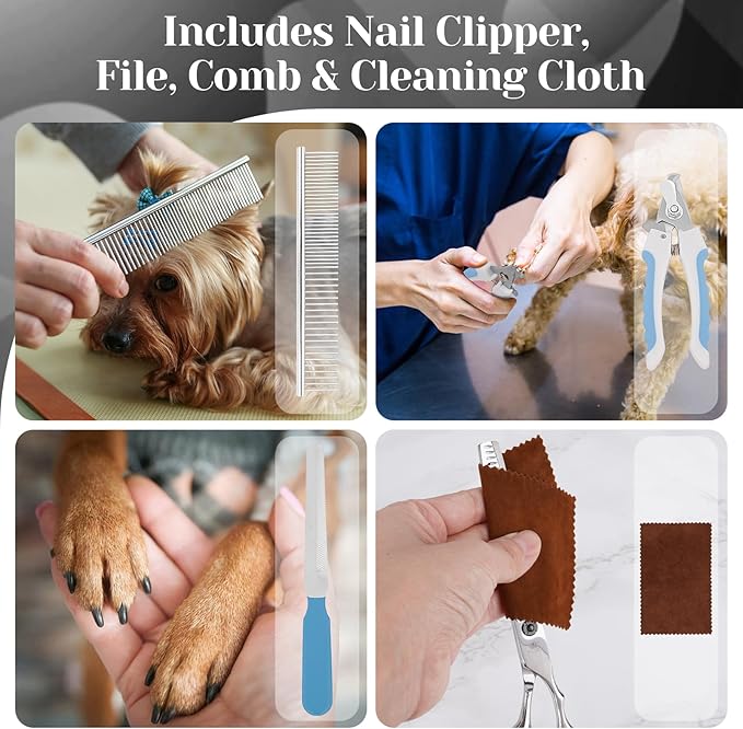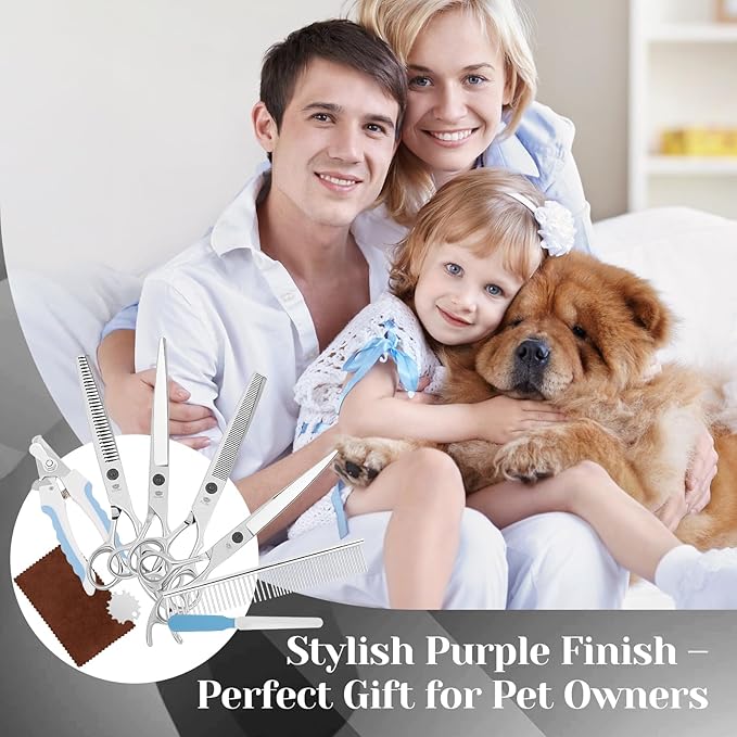 - Dog Grooming Scissors Kit – Includes curved, straight, thinning shears for dogs and chunker shears, plus nail clippers and a comb, giving you all the essential grooming scissors in one kit.