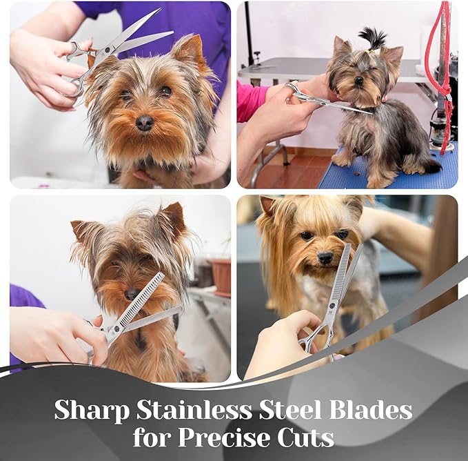 - Thinning Shears & Versatile Use – The set includes thinning shears for dogs along with curved, straight, and chunker scissors, meeting all your trimming needs from body to paws and face.