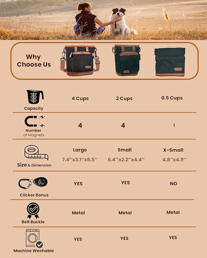 - EASY ACCESS WITH MAGNETIC CLOSURE: The unique magnetic closure allows swift opening & closing, making it easy to grab snacks or waste bags without slowing your training. Its fashionable, sleek design makes it ideal for fast-paced outdoor adventures, making it a great addition to any holiday dog training kit.