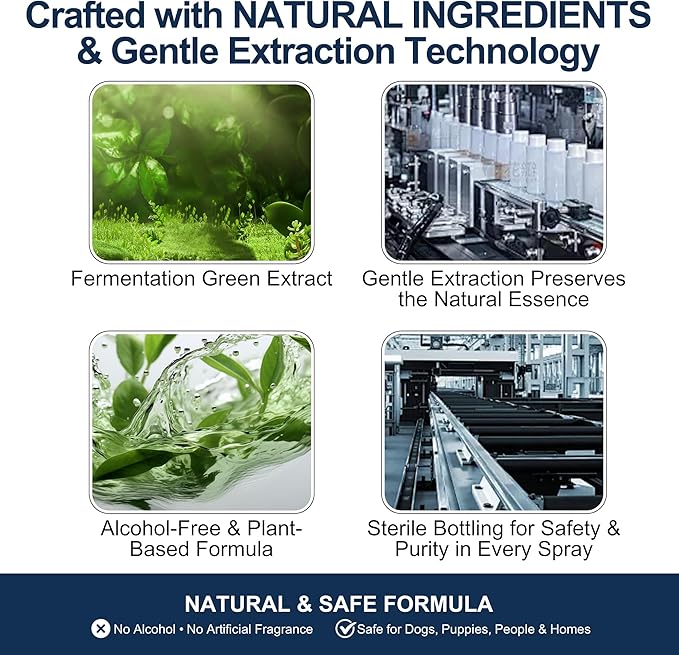 - 【 Gentle, Plant-Based Attractant Formula】 Formulated with natural botanical ingredients including catnip, geranium extract, and purified water, this safe, alcohol-free spray gently mimics natural scents to attract dogs without irritation or chemicals.