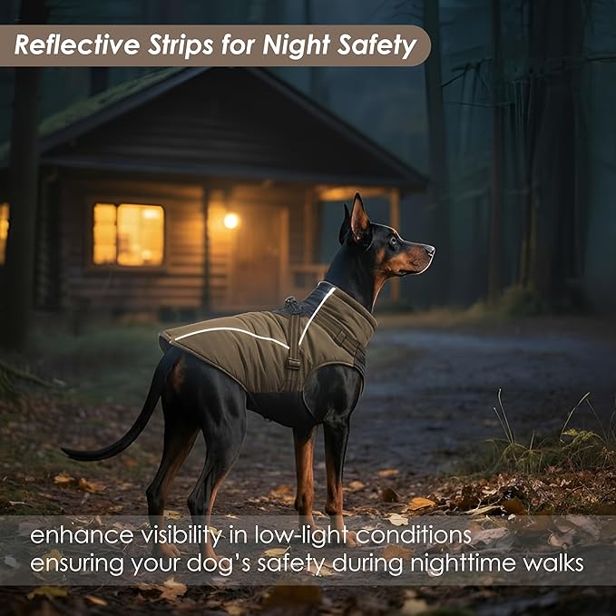 - Unique Design: Featuring an easy-to-use back zipper for quick on-and-off, adjustable high-neck collar to block chilly winds, built-in harness, and reflective strips on the back for enhanced visibility and safety during early morning or evening walks in low light