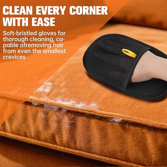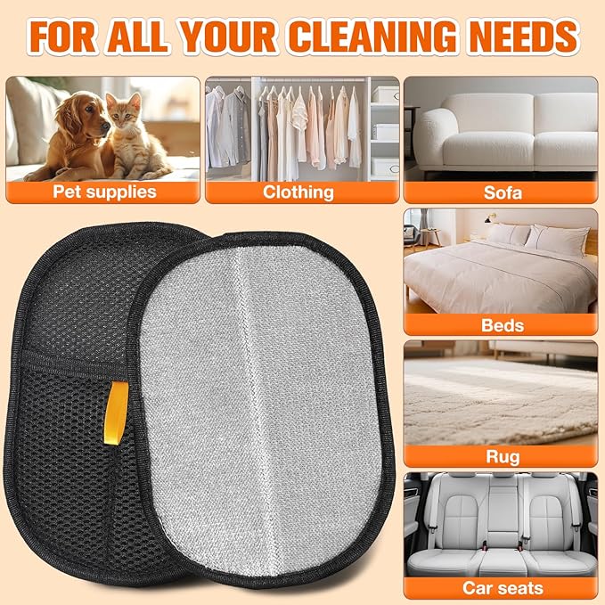 - Suitable for Any Fabric Surface: From clothing and bedding to sofas, carpets, and car seats, this pet hair removal glove is effective on almost every fabric surface. No more endless rolling or spot cleaning—just slide your hand and enjoy quick, effective results. Ideal as both a cat hair remover and a dog hair remover