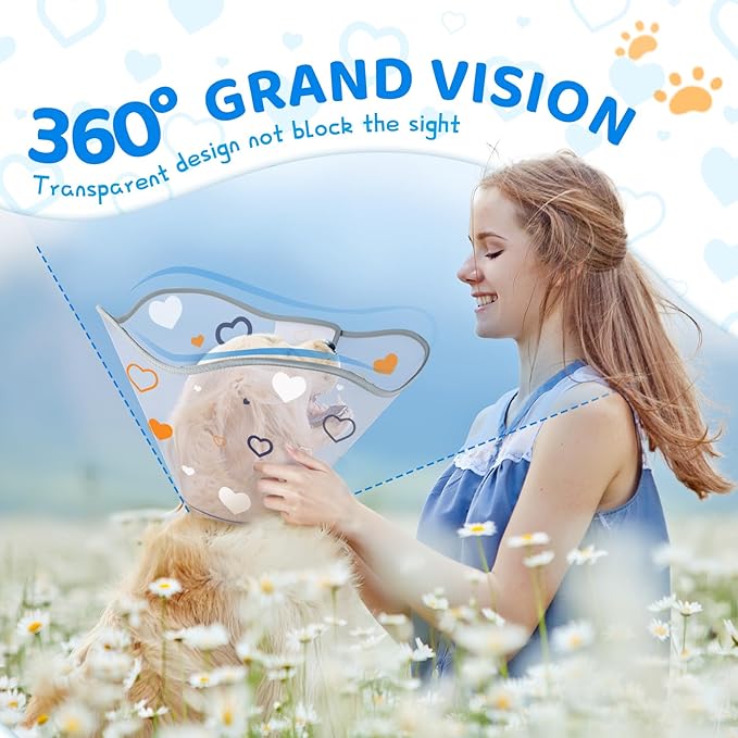 Dog Cone After Surgery - Soft, Comfortable, Adjustable Recovery Collar for Large, Medium, Small Dogs - Stop Licking with Soft Protect Edge (Love, L)