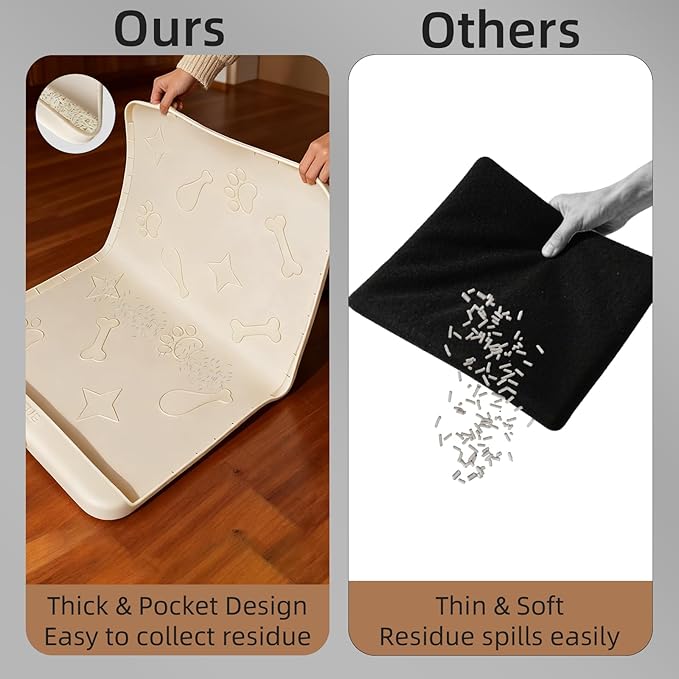 - Soft Silicone Material: The cat litter box mat is made of high-quality silicone, offering a soft texture that protects your cat's paws. Silicone mat features raised edge, which can effectively prevent litter and water seepage, protect your floors.