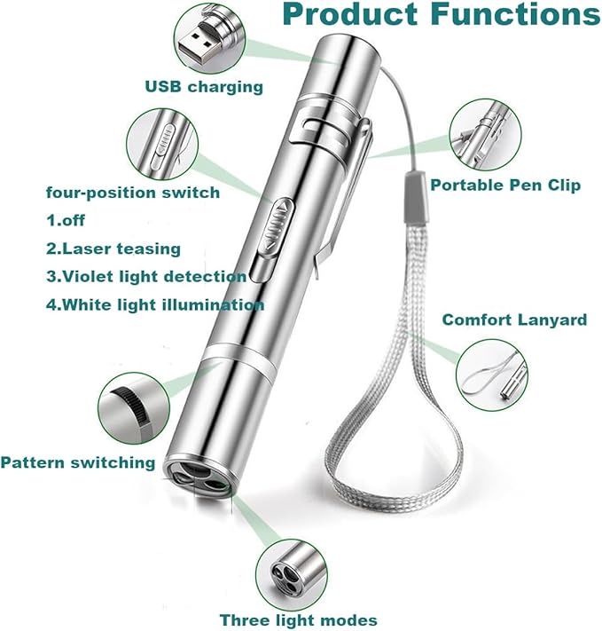 - Interactive Cat Toys:High quality aluminum alloy shell which equipped with metal clip design and three adjustment modes, only need to slide adjustment, no need to long press,in addition,Interactive cat toys mini size and easy to carry, easily put this cat toys in your pocket or bag, use it anytime and anywhere for added.