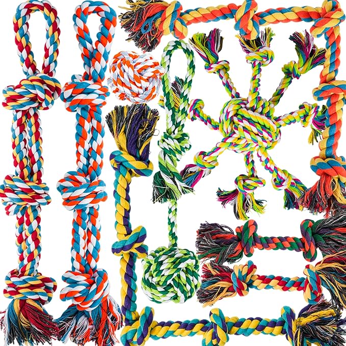 - 🐶【Best Gifts for Large Dogs】Value Price, Colorful and multi-style design, is perfect as a birthday and holiday gift for your dogs. It's more than just entertainment, it's also a means of exercise that helps keep our canine companions healthy. Dog rope toys are consumable and not truly indestructible. If your dog is a very aggressive chewer, we recommend play with supervision. If you are not satisfied with the use, you can contact us at any time and we will respond within 12 hours.