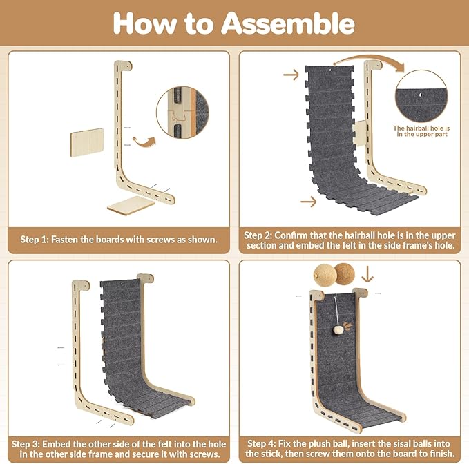 - Easy Assembly: Nxwjoy's cat scratchers have clear installation instructions and are easy to assemble. Nxwjoy is committed to providing you and your pet kids with satisfactory merchandise, and we are confident that our customers will love our products as much as we do. However, if you are not satisfied with our products, please feel free to contact us. We will try our best to provide you with satisfactory service.