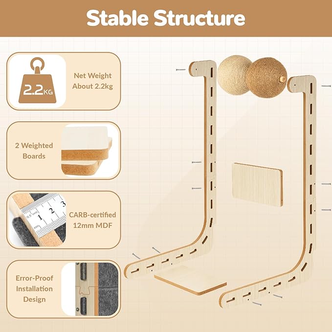 - Constructional Upgrade: The Nxwjoy cat scratching mat features a 10cm gap to accommodate wall skirting. Made from CARB-certified 12mm MDF, its sturdy structure weighs approximately 2.2kg, ensuring stability for adult cats during use. A mistake-proof design has been upgraded to the board joints to prevent installation errors, and upgraded materials resist damage from repeated assembly and disassembly.